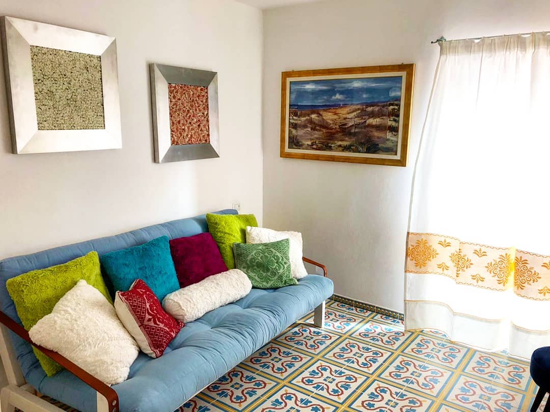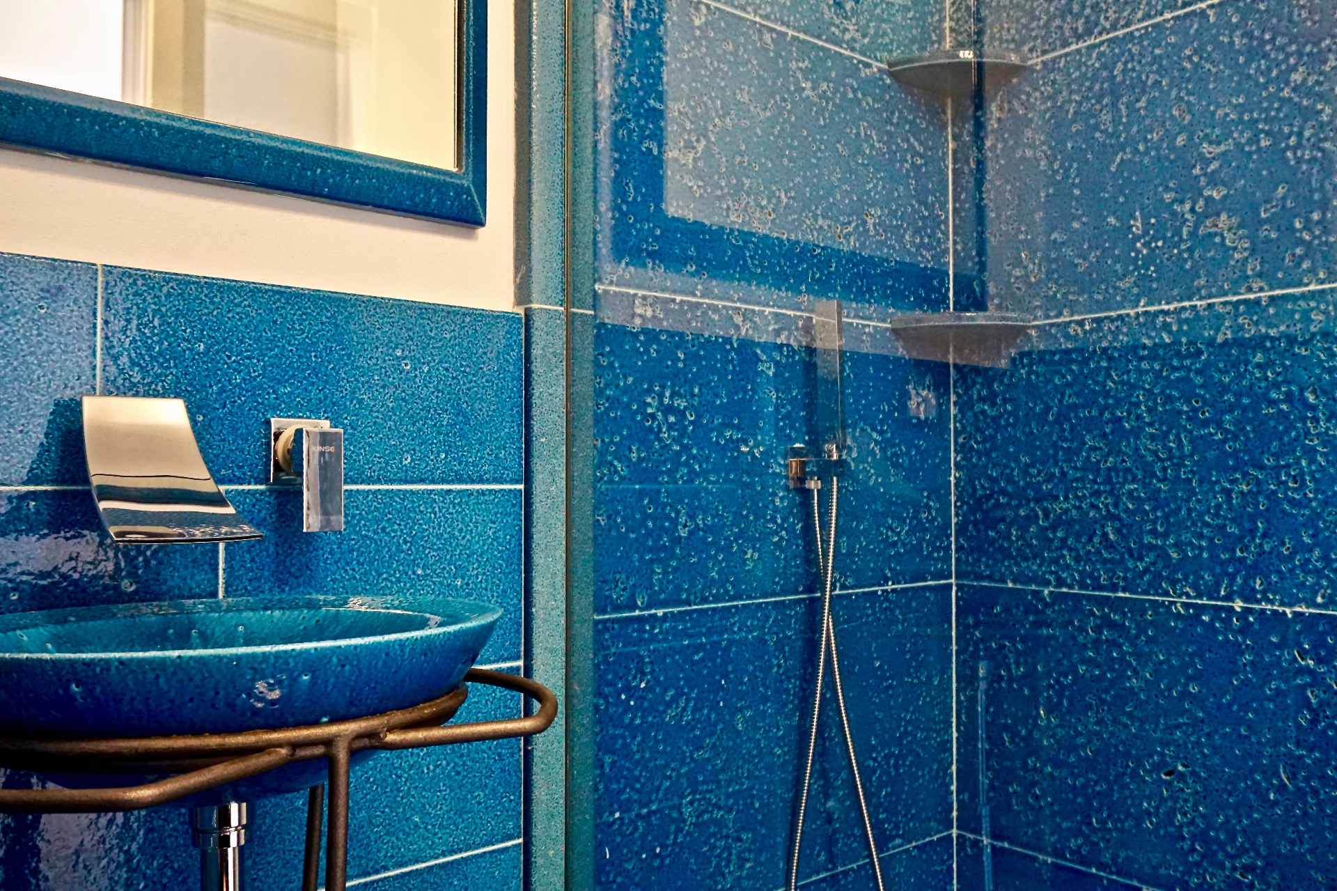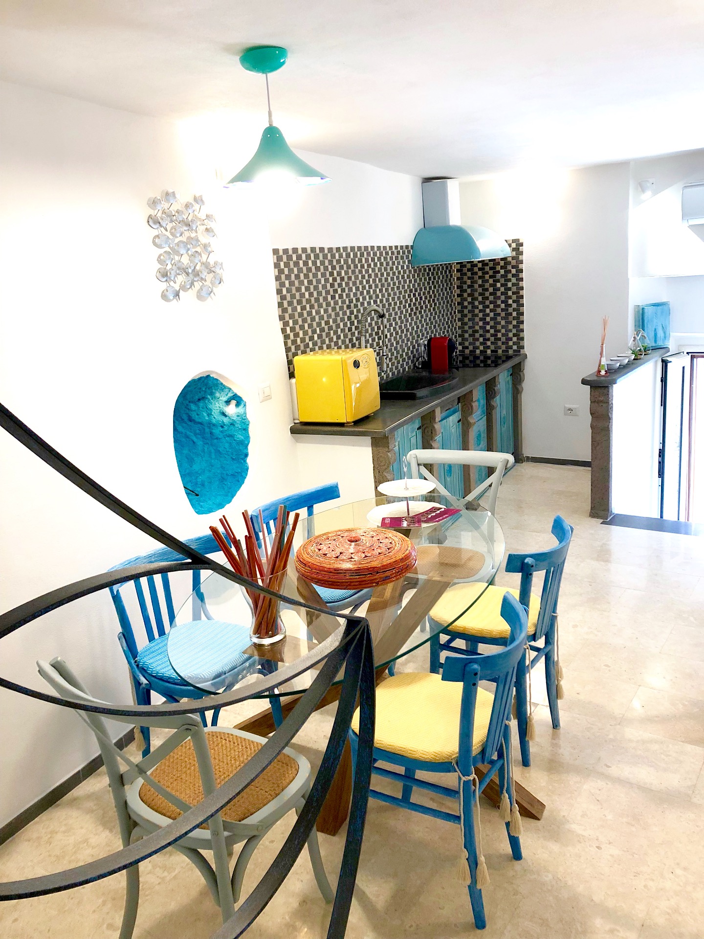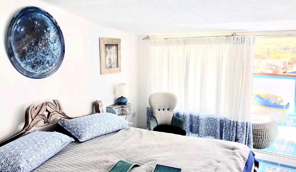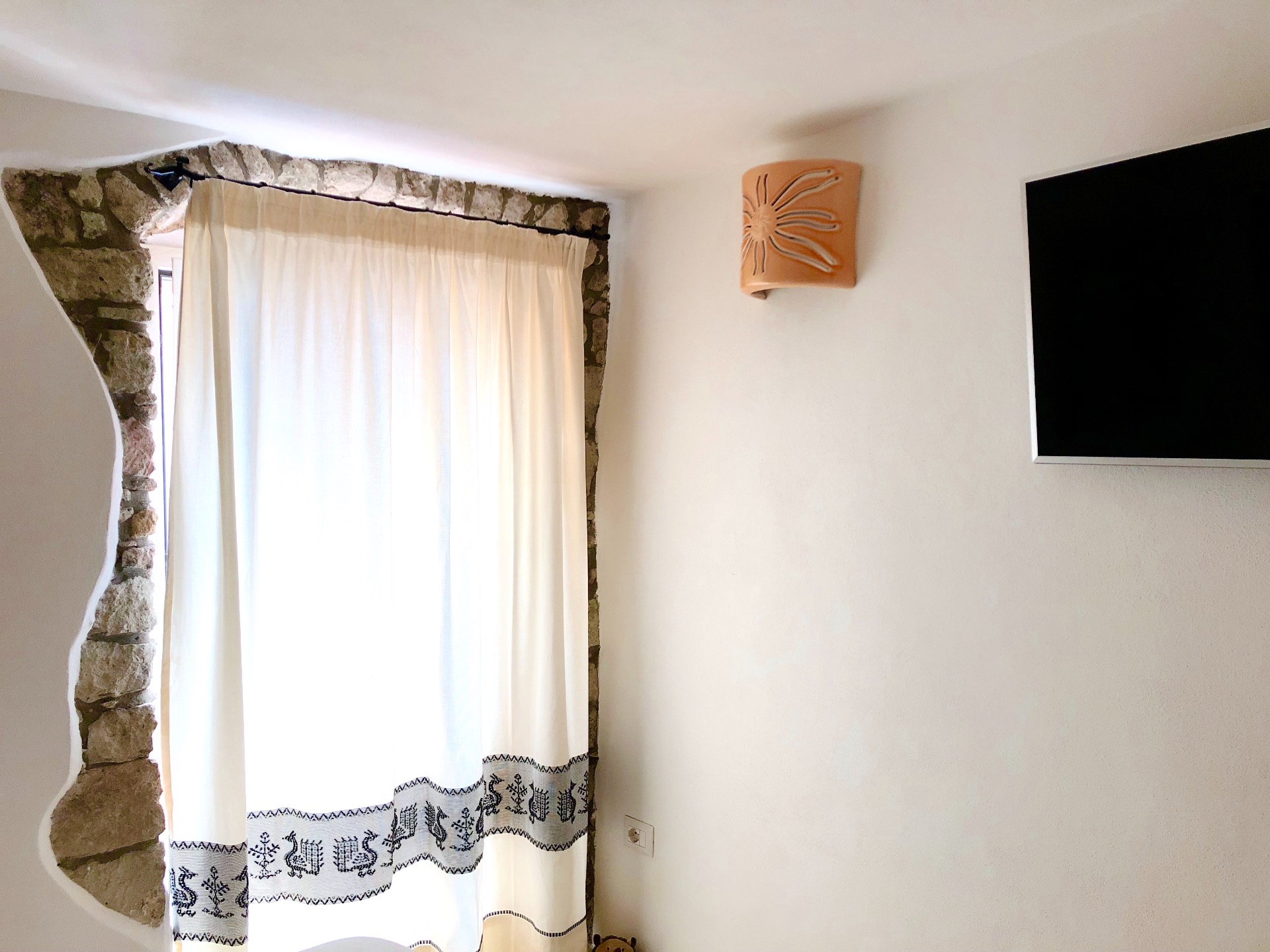 La camera 9 è composta da un letto matrimoniale con cuscini e materasso memory form, armadio, bagno privato con ampia doccia e due varianti di getto, realizzato interamente in biancone di Orosei, televisore ultra HD 4K collegato direttamente alla fibra con accesso gratuito a Netflix, portafinestra.
